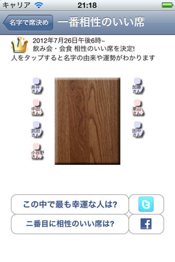飲み会や会議でメンバーの名字から相性を診断し座席を決定するアプリ